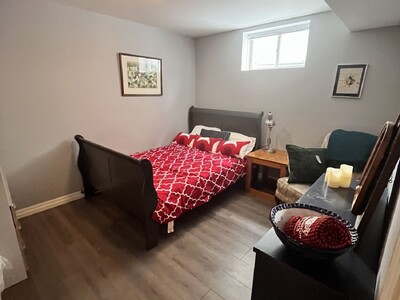 Lovely and clean apartment: Furnished with utilities Included. Good neighborhood of Masonville. - 2 minute walk to the #19 bus stop to Masonville Mall where you can catch all buses - 6 minutes drive to St. Jo's or University Hospital/WesternU. 15-20 min drive to Victoria hospital - Professionally built in 2018 with slate and laminate flooring. - 2 bedrooms with locks + a shared living room in between for privacy. Full private bathroom just for the 2 rooms. Price listed is for one room; one of the two rooms is currently occupied by a working professional man. See floor plan image for details - Bedroom has: wArdene, dresser drawers, desk, and chair and a double bed - basic Kitchen area with table & chairs, and cooking equipment (full fridge, toaster, griddle, kettle) plus a newly installed large stainless steel sink with quartz counter and storage area for dishes - Length of lease negotiable per prices listed. - Homeowner lives in the house and is a professor at Western. - Pricing is for one person per bedroom. - We have a backyard garden, patio and porch -use negotiable. - Walking trails and a large open space park with basketball courts, soccer fields and a school nearby (see map) Available on request: more photos; video-call for tour; copy of contract, viewing appointment.