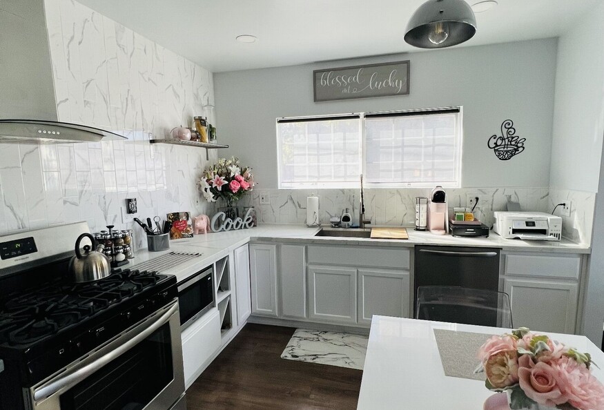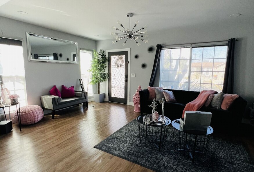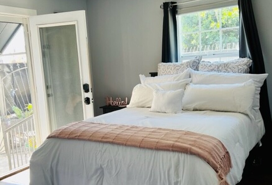 🏡 Modern Luxury 2BR/2BA Gated Home — Designed for Traveling Medical Professionals Step into comfort, style, and serenity. This newly updated 2-bedroom, 2-bath home is designed exclusively for traveling medical professionals seeking a secure, fully furnished short-term stay with all the comforts of home. Each private bedroom includes a private bath and privacy door locks, ensuring peace and personal space. The rear suite even features its own private entrance and exit — perfect for late or early shifts. ✨ Features & Highlights: Fully furnished with modern décor and Queen-sized beds Walk-in closets, blackout blinds, and natural lighting Glass shower with rainfall shower + handheld wand Eat-in kitchen with stainless steel appliances: gas range, microwave, Keurig, air fryer, dishwasher In-unit washer & dryer Central A/C & heat + ceiling fans in every room (2) Backyard patios, quiet outdoor seating & designated smoking area Optional gated parking available All essentials included: cookware, dinnerware, utensils, and fresh linens 💰 $1,599 per room | $1,000 deposit | Minimum 3-month stay Ask about our reduced rate for renting the entire home! Enjoy modern living in a secure, peaceful environment — ideal for rest between shifts and easy access to Los Angeles' top hospitals.