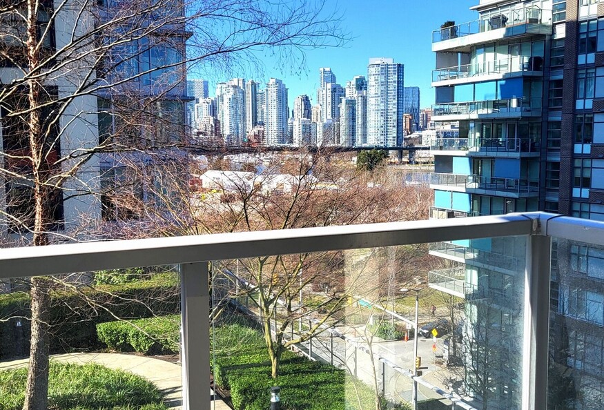 bedroom. Sunny balcony overlooks the lovely rooftop garden and offers a corridor view of False Creek & BC Place. Steps from Skytrain, Seawall & minutes to Granville Island/Downtown shopping. Amenities include a gym, meeting room, lounge & roof gardens. 1 parking stall included. Available May 1, 2026
