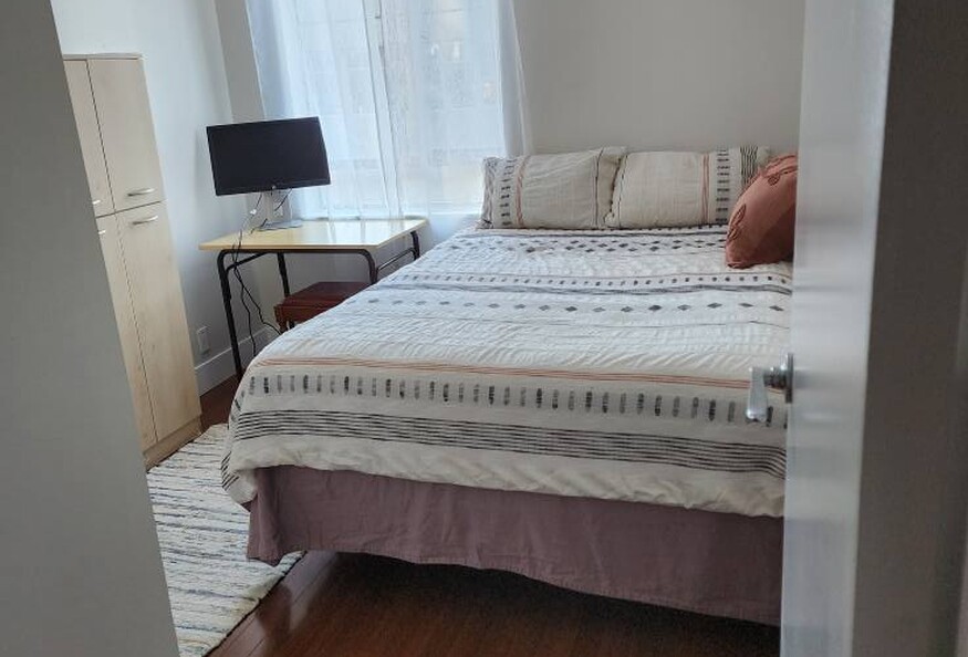 Centrally located, making it super convenient to access public transit, shops, restaurants and entertainment. Minutes walking to downtown and to the iconic Johnson Street Bridge, Market Square, Harbour, Parliament, museums, parks and waterfronts. The condo located on the 3rd floor of the 10 floors building and will be shared with one professional female, often working and studying from home. Quiet and focused environment will be a must. No parties No pets * No smoking/vaping (including balcony)