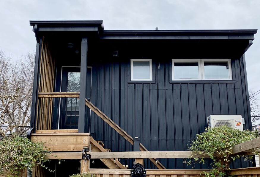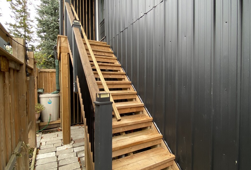 Welcome to The Royal Garden Guest Suite. This is one of Toronto's new trendy Laneway Suites located up 1 flight of exterior stairs above the whisper quiet 2-car garage. This is a stand-alone, private building. Entrance to the suite is through the side gate, next to the main house accessed from our gorgeous tree-lined street. We are 1/2 a block from Danforth Ave. (Greektown) and from the Chester/Danforth subway station. Convenience to get around the city couldn't be any easier. It's well lit for night time arrivals and motion sensor lights illuminate the path and stairs.