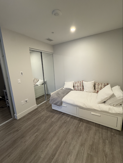 Bedroom available in two bedroom apartment. Located steps from the CIVIC Hospital with shuttle service to all campuses located outside front door of the building. The building is on a bus route and the O-train line. It is steps from Ottawa's Little Italy area with many restaurants, bars and cafes. The bedroom is a den with a day bed - it can pull out into almost a king size bed. Private bathroom with shower. There is a gym and outdoor pool/hot tub. I am a physiotherapist working at the hospital looking for a quiet and respectable person to share my living space with me.