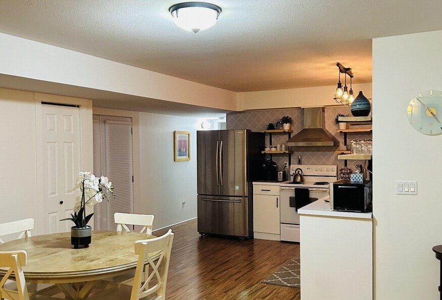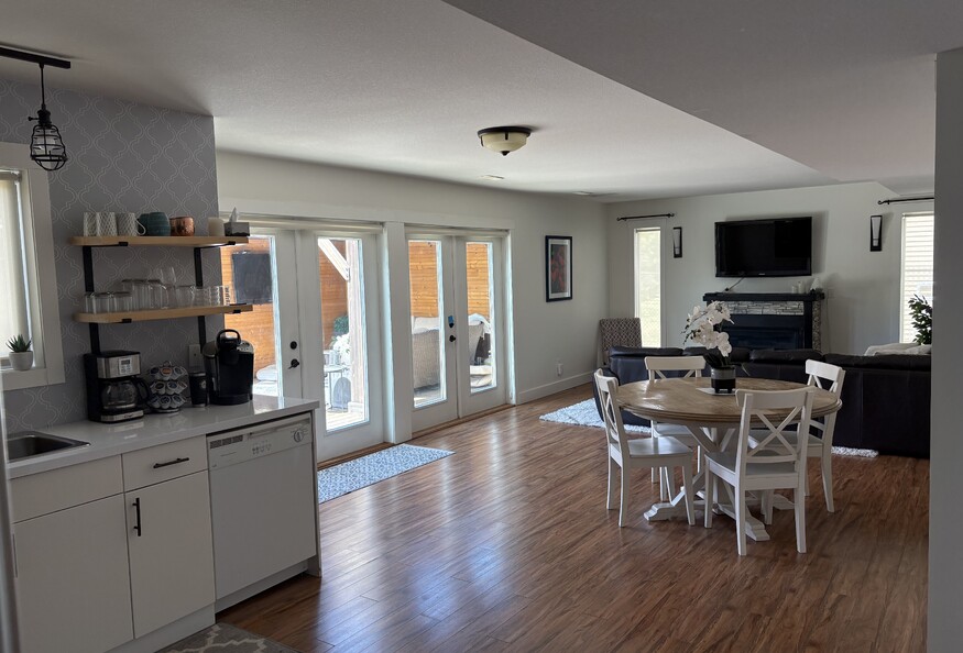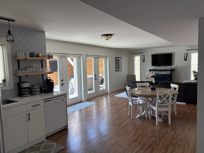 Welcome to our spotless, bright and cozy, fully self contained 2 bedroom above ground suite on the main level in our home. We take pride in providing a clean and quiet space to our quests. Our suite comes with everything you'll need to have a comfortable stay including a dishwasher, washer and dryer, gas fireplace, full kitchen, Keurig, bathtub, outdoor covered pergola with TV and fireplace and off street parking. High speed internet and streaming services provided as well. I'm sorry we cannot accept pets as we have a dog of our own who will be in the backyard at times and absolutely so smoking of any kind on the property please.
