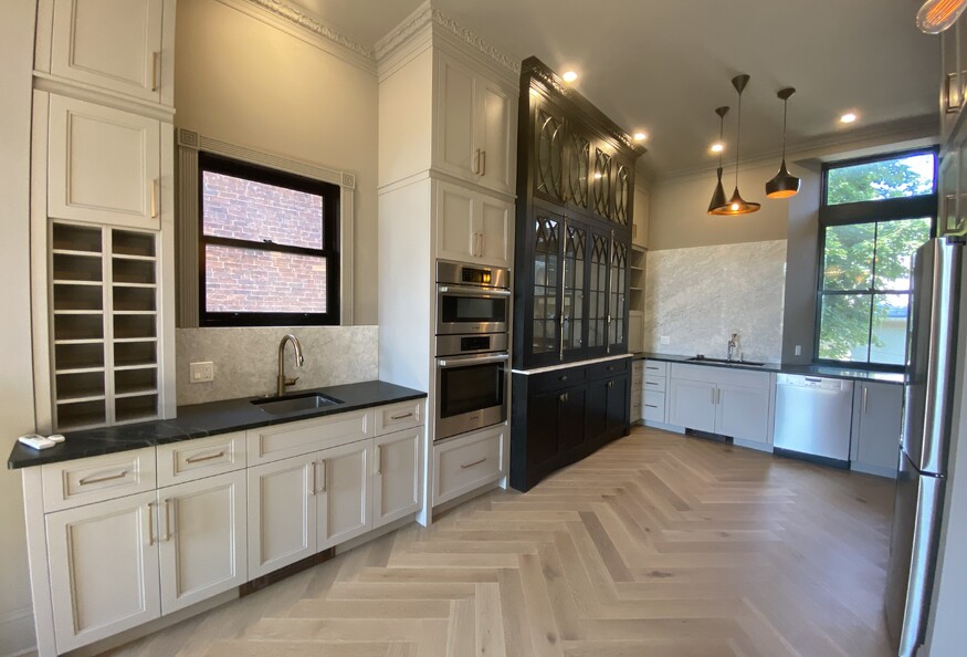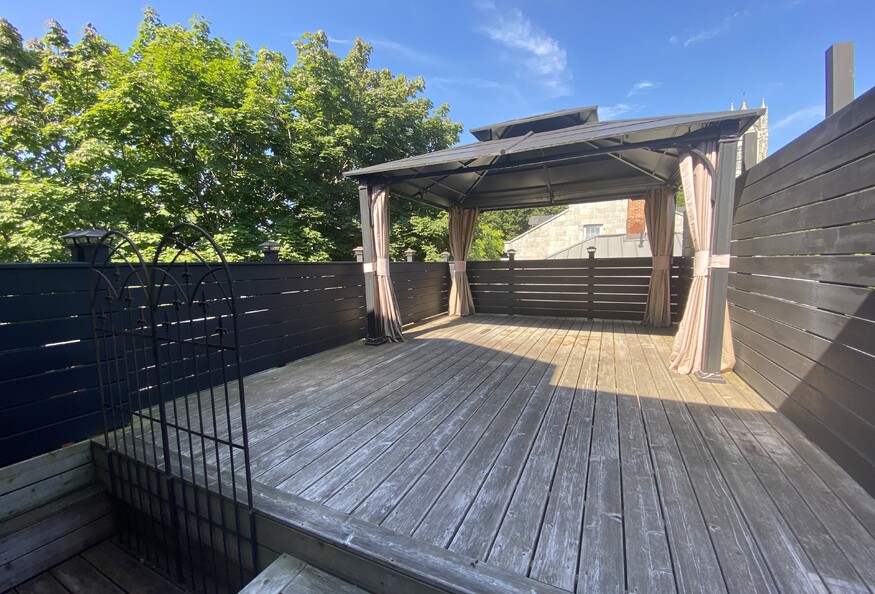 Availability: Immediately Top floor, two-storey 1 bed unit located in Sydenham Ward! High ceilings and custom finishings throughout Entryway with exposed limestone wall and ceramic tile Gorgeous main floor bathroom with gold wallpaper, freestanding sink on wood table top, ceramic tile surround shower with window Open concept living/dining and kitchen area Kitchen featuring floor to ceiling two-tone cabinetry with gold hardware, stone countertops, ceramic tile backsplash, large window and modern pendant lighting Wet bar with built-in wine bottle storage Appliances included: fridge, cook top, hood fan, wall-mounted oven and microwave, and dishwasher Living/dining area with gas fireplace, gorgeous white detailed mantle with open shelving, several windows allowing for plenty of natural light, and modern light fixtures throughout Stairwell leading to the second floor of the unit features custom built closet doors providing ample storage space inside the unit, and access to the private balcony Large balcony features a gazebo, perfect for summer dinners The primary bedroom occupies the entire upper level of the unit with large closet, gas fireplace, exposed brick wall, wood beams, and ensuite Ensuite with stand alone soaker tub, ceramic tile and glass shower with rain shower head, stone countertop vanity, and toilet in private stall Second balcony off of the bedroom overlooking Sydenham Street In-suite laundry Utilities extra Parking available at an additional cost ($150/month)