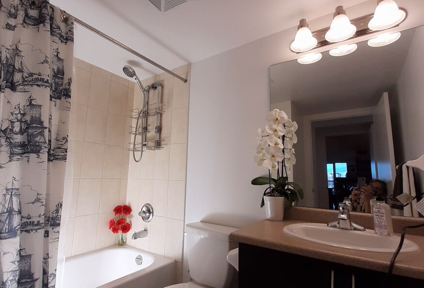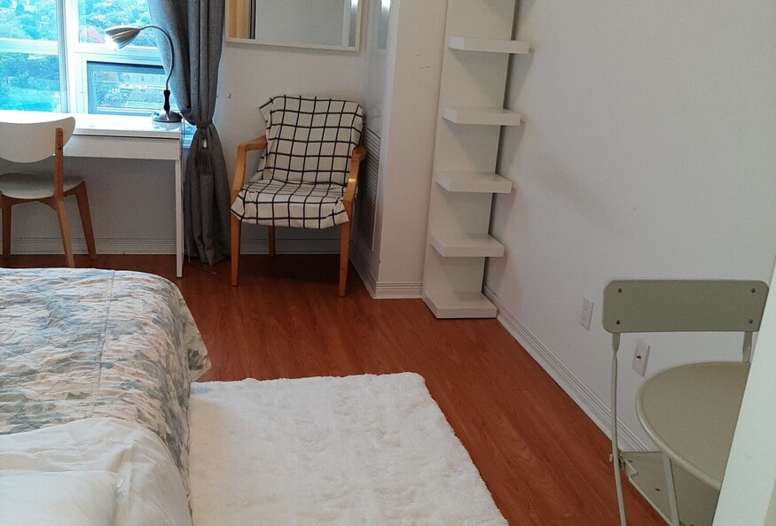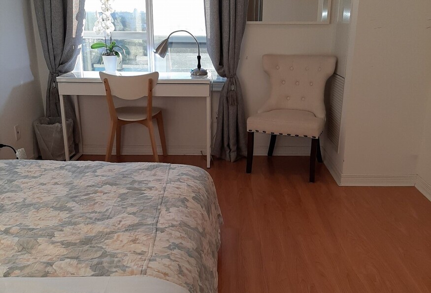 - Large Furnished Three bedrooms+Amazing Sunsets from the Master Bedroom -Two complete Bathrooms+Laundry w/ Storage+Spacious Kitchen with houseware+Comfortable Dining room w/Table and Chairs+Pleasant Living Room w/Glass Walls and Couches-Large Balcony w/Table facing the Ontario Lake and High Park- Air Filters+Air Conditioning+Heat-Only Two People in the Apartment (female full time working teacher/university alumni + potential roommate)