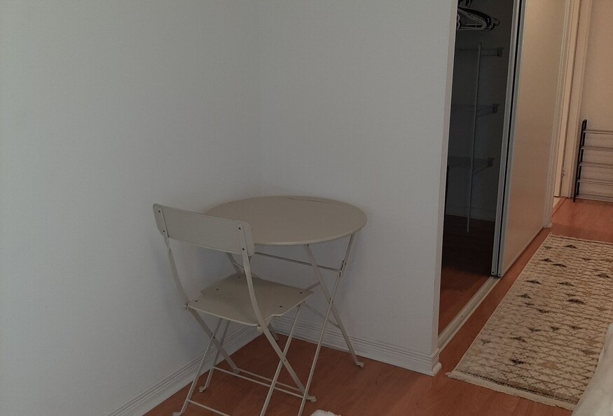 - Comfortable Queen Bed size w/cozy blankets + ergonomic desk with light + chair-restful armchair to read+round table + chair to eat + fridge in the suit+ oversize closet for storage+master bathroom w/bathtub and storage under the sink-Keys for he master suit and FOB to enter the building