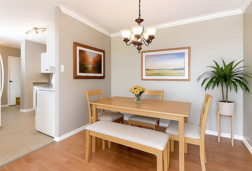 Huge, sunny living room with westerly views from the 10th floor, separate dining room, bright white kitchen has a quiet Bosch dishwasher. Rent includes in-suite laundry, indoor parking in assigned space in secure garage, and water. Guest parking available. The apartment can be offered unfurnished or furnished. It would be outfitted with new furnishings (not what's in the photos here).