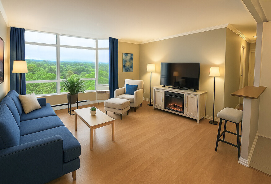 Everything is convenient: 5-minute drive either direction to Victoria Hospital or the 401, 15 minutes to Western, London Transit bus stops out front. Banks, gas, groceries, drug store, fast food, restaurant with live entertainment, etc are 2 minutes away. Enjoy cycling through the Thames Valley Parkway accessible across the road, and keep your bike in the building's bicycle storage room.