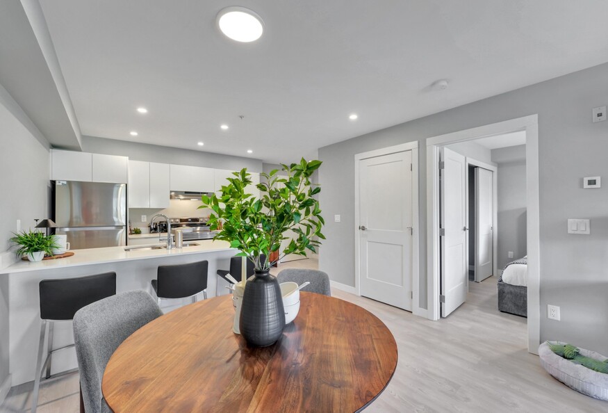 Choose from a selection of 1, 2, and 3-bedroom suites at Blueprint Residences, offering modern living in a well-connected community. Residents have access to amenities including a dog wash, outdoor dog run, playground, community gardens, and complimentary bike share.