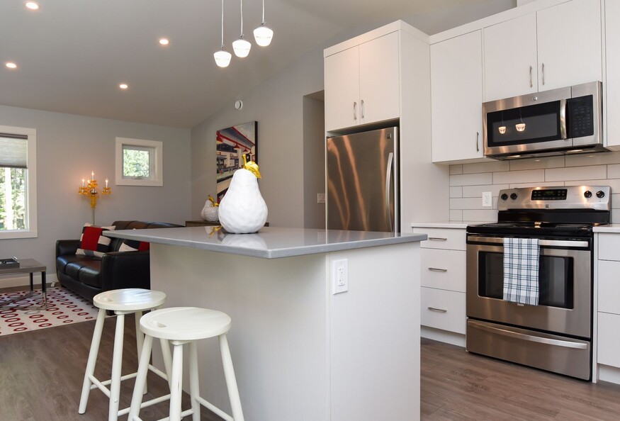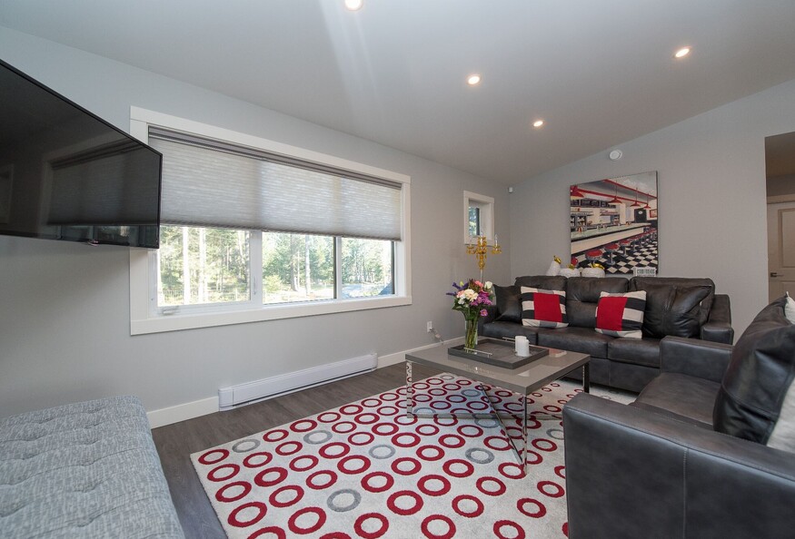Our beautiful carriage house property is exquisitely located amongst the background of the trees. Just a ten minute walk to the beach at Pt. Holmes and a 15 minute drive to the Hospital and all major amenities. We are a 40 minute drive, door to door, to Mt. Washington Alpine Ski Resort. Guests love the peacefulness and privacy of this location. The covered balcony with a fire table and bbq is a guest favorite. The apartment comes fully furnished with a full bath (including tub), and an in suite laundry room. The kitchen is very well equipped for all your cooking needs. Guests also have access to a small yard with Adirondack chairs and another fire pit. A covered carport is included. EV charging is also available (for an additional fee).