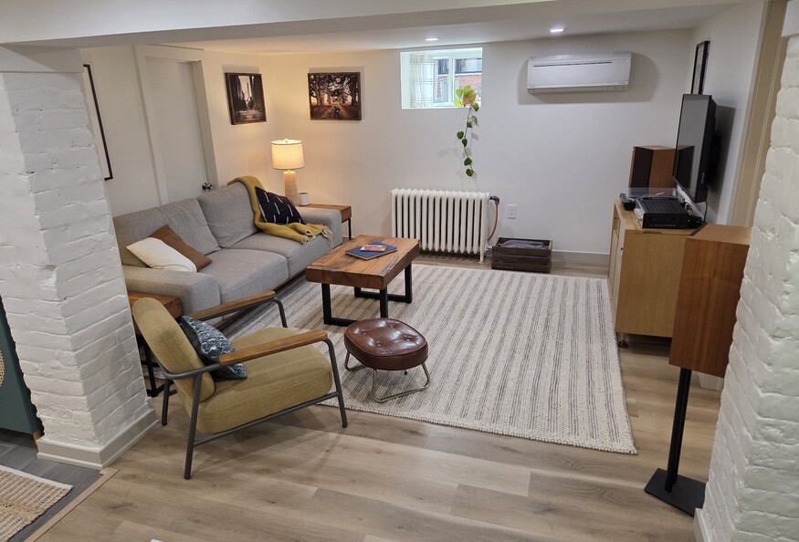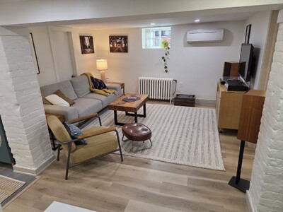 Experience cozy comfort and modern convenience at The Nook in Kirkendall - a quiet family friendly neighboorhood surrounded by nature. The space is a newly renovated basement apartment ideal for those who appreciate tasteful styling and natural light. The private entrance leads to a warm and inviting space, ready for you to relax in.