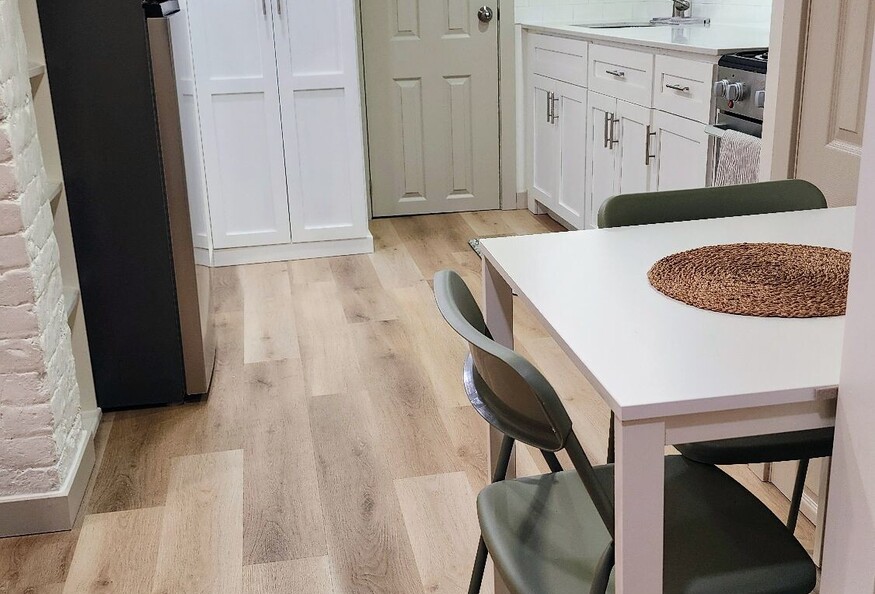 - Dining Area: A simple bistro-style table set, ideal for enjoying meals or catching up on work in a cozy, relaxed setting.