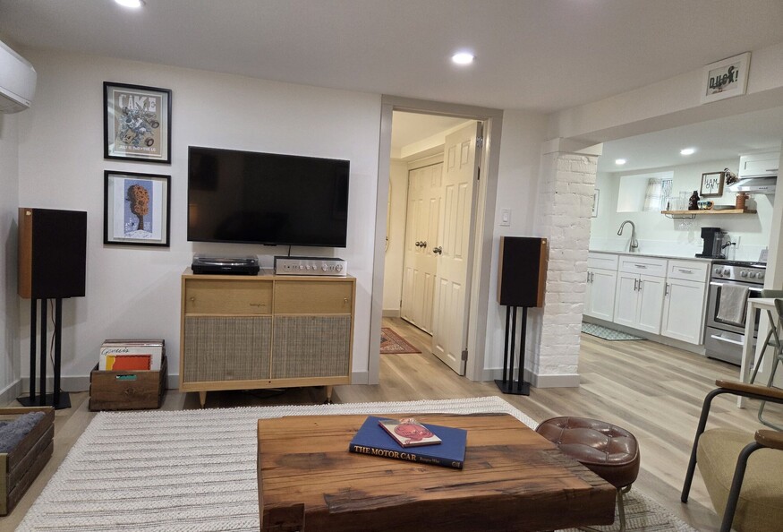 The well-equipped kitchen includes fresh linens and basic cleaning and hygiene products, perfect for your stay. Enjoy the record player paired with great-sounding vintage speakers that also offer Bluetooth connectivity, plus a TV with all the streaming apps and free fast WiFi.