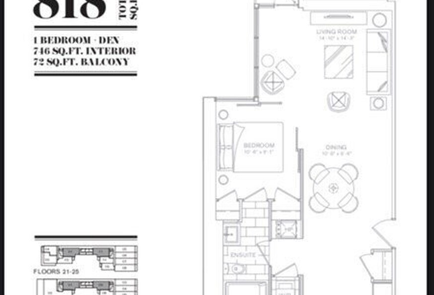 Unit is bright, has 9 foot ceilings, open concept with 1 Bedroom, Bathroom, Separate Den, and Balcony. Some specifics of the furnishings include: