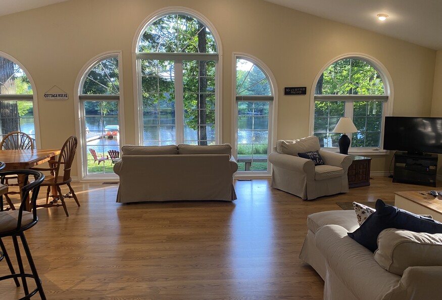 The house for rent is located on a private cottage road, on the Muskoka River, 7 km from South Muskoka Memorial Hospital in Bracebridge. The house has two bedrooms, One 4 piece bathroom, one large open concept living, dining and kitchen area overlooking the Muskoka river. The house comes fully furnished, turn key ready to move in.