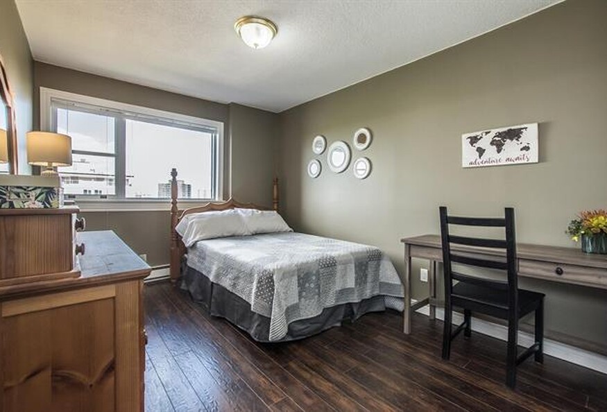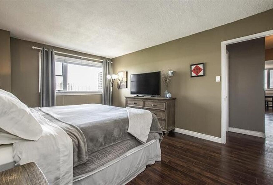 10th floor unit has been completely updated by the current owners and is move in ready. The condo boasts stunning views from every window and is bursting with natural light. The kitchen has been opened up to allow a lovely flow, perfect for entertaining your friends and family. With stainless steel appliances and floor to ceiling windows, cooking here will be an absolute treat! And the large living room with a sweet dining nook is such an inviting space to walk in to. This carpet free condo has gorgeous updated lighting and shows beautifully. And with a freshly painted enclosed balcony with a stunning view of downtown, this unit has everything you need! With 2 bedrooms including a large primary bedroom with double closets, this unit is stylish and spacious. And did I mention the updated bathroom? You will love it! With a majestic lobby, 24 hour concierge, and of course the fantastic inground swimming pool and gorgeous deck for sunbathing and relaxing with friends, Embassy Towers is the perfect place to call home. And the location cannot be beat! Close to downtown, hospitals and universities, you can leave your car at home!