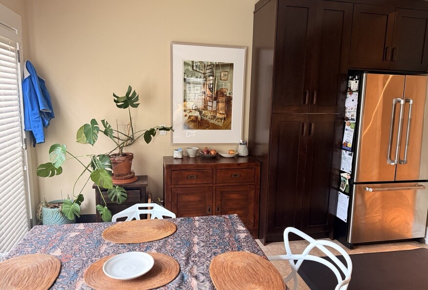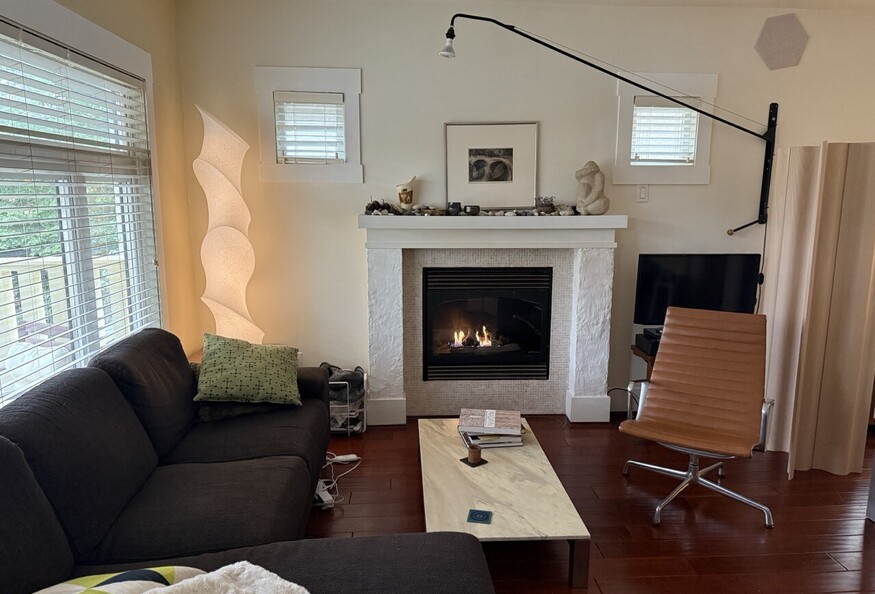 We live part-time in a lovely two-storey townhouse that we rent out in part or in whole when we work elsewhere for extended periods. During the 2025/2026 academic year, we are making our guest bedroom available for limited periods for people who need accommodation for one or two weeks. The very central location is a short walk (less than 20 minutes to Vancouver General Hospital, and a 10-minute walk to the Canada Line subway to downtown or airport, or the Broadway direct bus to UBC. Our townhouse is on a lovely tree-lined street between the vibrant shopping and dining of Main and Cambie streets. The furnishings are high-end, with an Eames chair and folding screen, marble dining and coffee tables, original art, gas fireplace, piano. The separate kitchen is fully equipped with everything you need, including a KitchenAid mixer, a Vitamix, and high-end gas stove and other appliances. The bedroom has its own dedicated bathroom down the hall for your exclusive use. The furnishings include a small desk, bookcase, chairs and side table, plus an (IKEA Trundle bed) that can expand to a double. This bedroom has doors opening onto a completely private patio. Off the upstairs hallway is a closet with a stacked full-size high-efficiency Samsung washer and dryer. Weekly rent for the room and exclusive use of the bathroom is $500, inclusive of utilities and expenses, including Netflix and wifi. No smoking, no pets allowed. An additional study/guest bedroom could be available for an additional charge.
