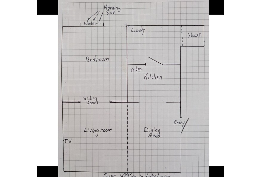 - Spacious: Bedroom 13'x11; Livingroom 12'x11'; dining area 12'x9'